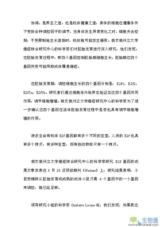 控制癌细胞生长的四个关键基因
