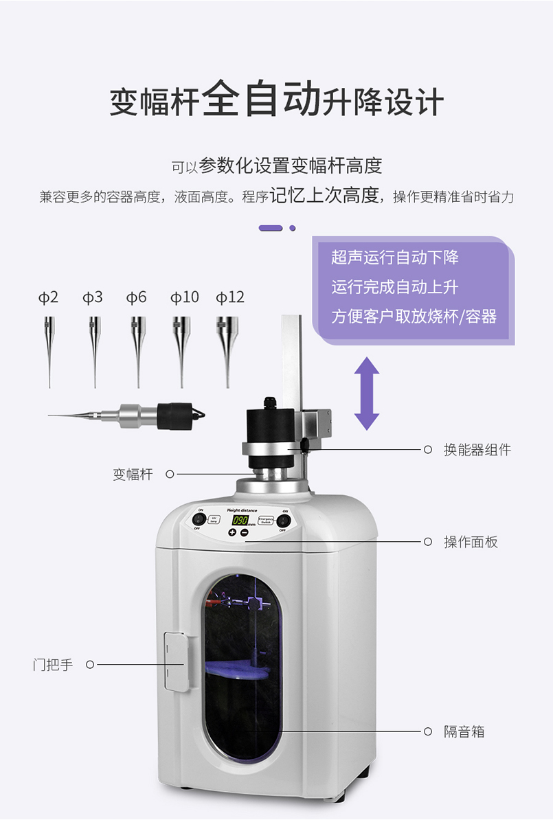 产品描述:米欧超声波细胞破碎仪,是一种利用超声波在液体中产生空化效应的多功能、多用途仪器。它能用于多种动植物、病毒、细胞、细菌及组织的破碎,同时可用来乳化、分立、匀化、提取、消泡、清洗、纳米材料的植被、分散及加速化学反应等。仪器被广泛应用于生物学、微生物学、物理学、动物学、农学、制药等领域的教学、科研、生产。